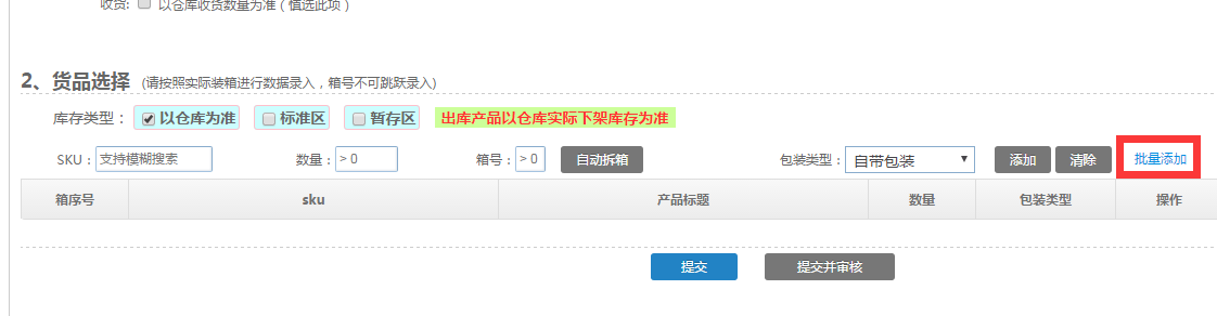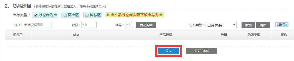 5.點擊【提交】,以便于箱內(nèi)貨品變動時可以更改入庫單信息