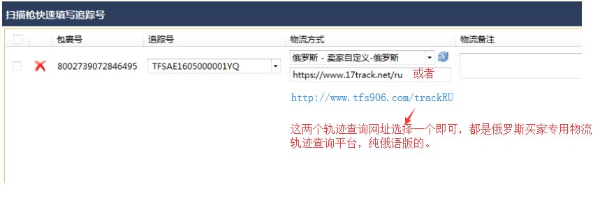訂單軌跡追蹤網(wǎng)址就填寫: http://m.zghbcf.com/trackRU (優(yōu)先推薦,它是俄羅斯買家專用的物流軌跡查詢平臺。純俄語版的) 或者 https://www.17track.net/ru
